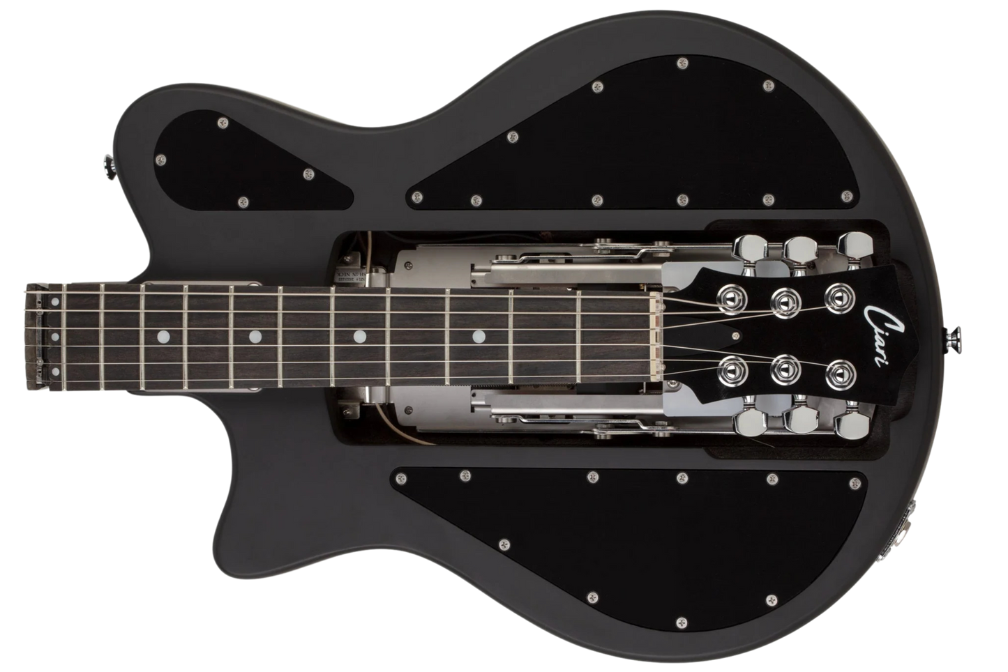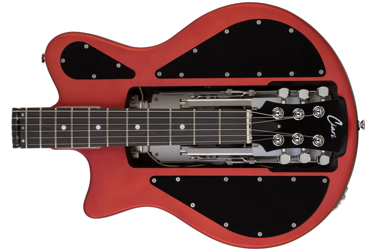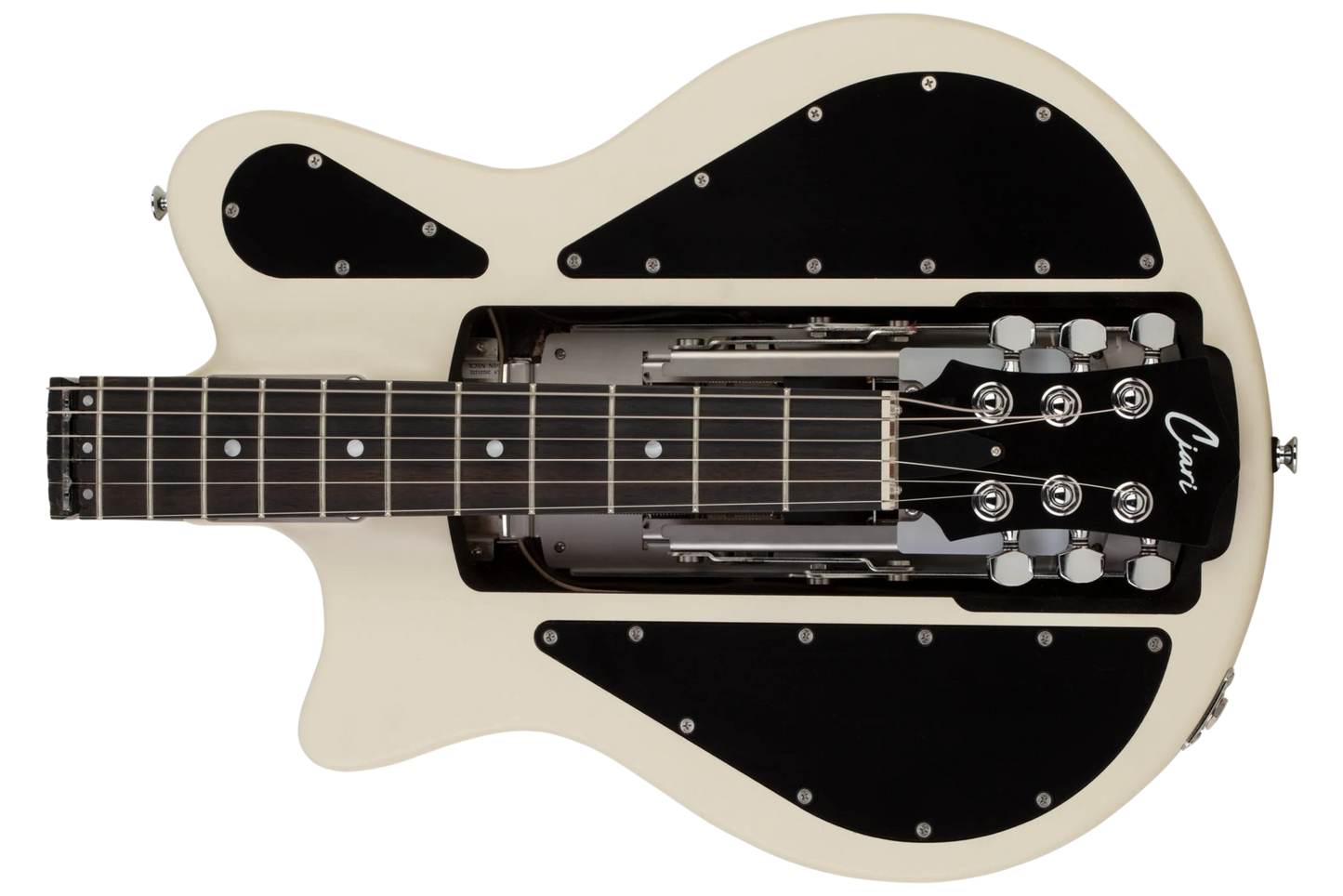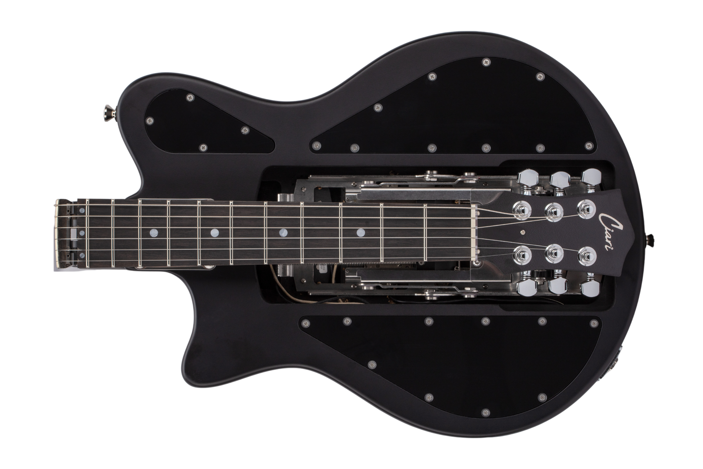 Designed for comfort and precision, the Ascender Duo features a weight-relieved basswood body and a shallow C-shaped mahogany neck. Its PLEK-machined neck and premium ebony fingerboard ensure perfect action, while medium jumbo frets and softened edges allow for effortless playability. Ciari’s custom locking tuners keep your tuning stable, even after the guitar is folded.
