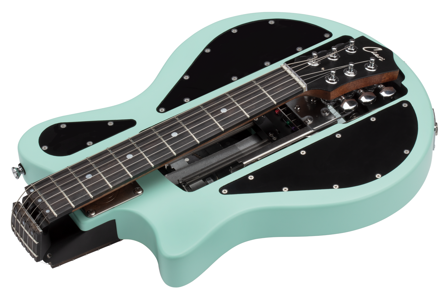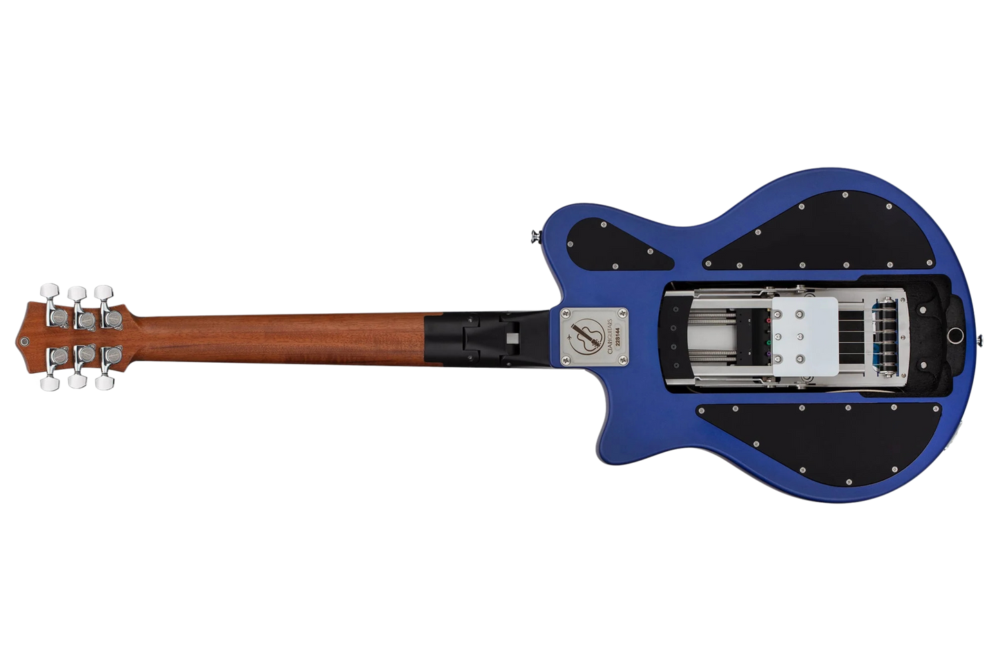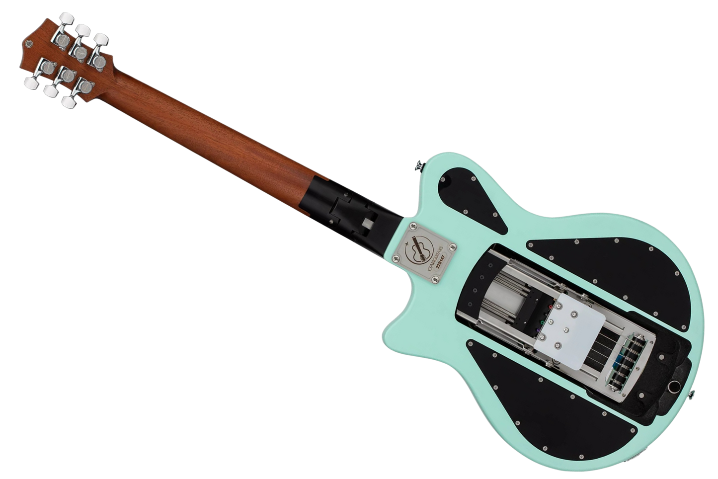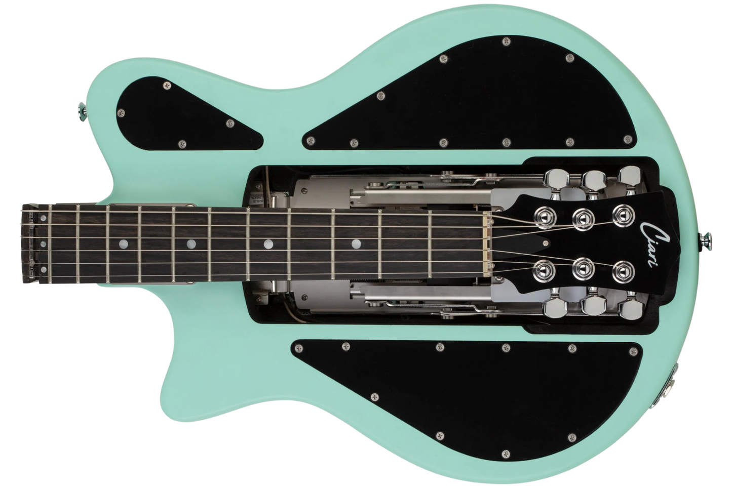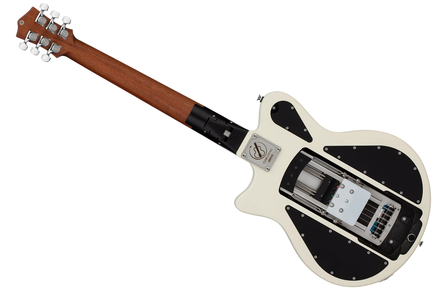Designed for comfort and precision, the Ascender Duo features a weight-relieved basswood body and a shallow C-shaped mahogany neck. Its PLEK-machined neck and premium ebony fingerboard ensure perfect action, while medium jumbo frets and softened edges allow for effortless playability. Ciari’s custom locking tuners keep your tuning stable, even after the guitar is folded.