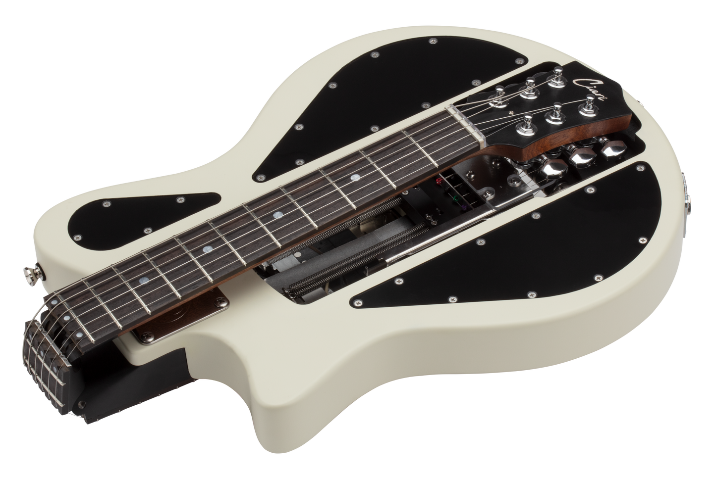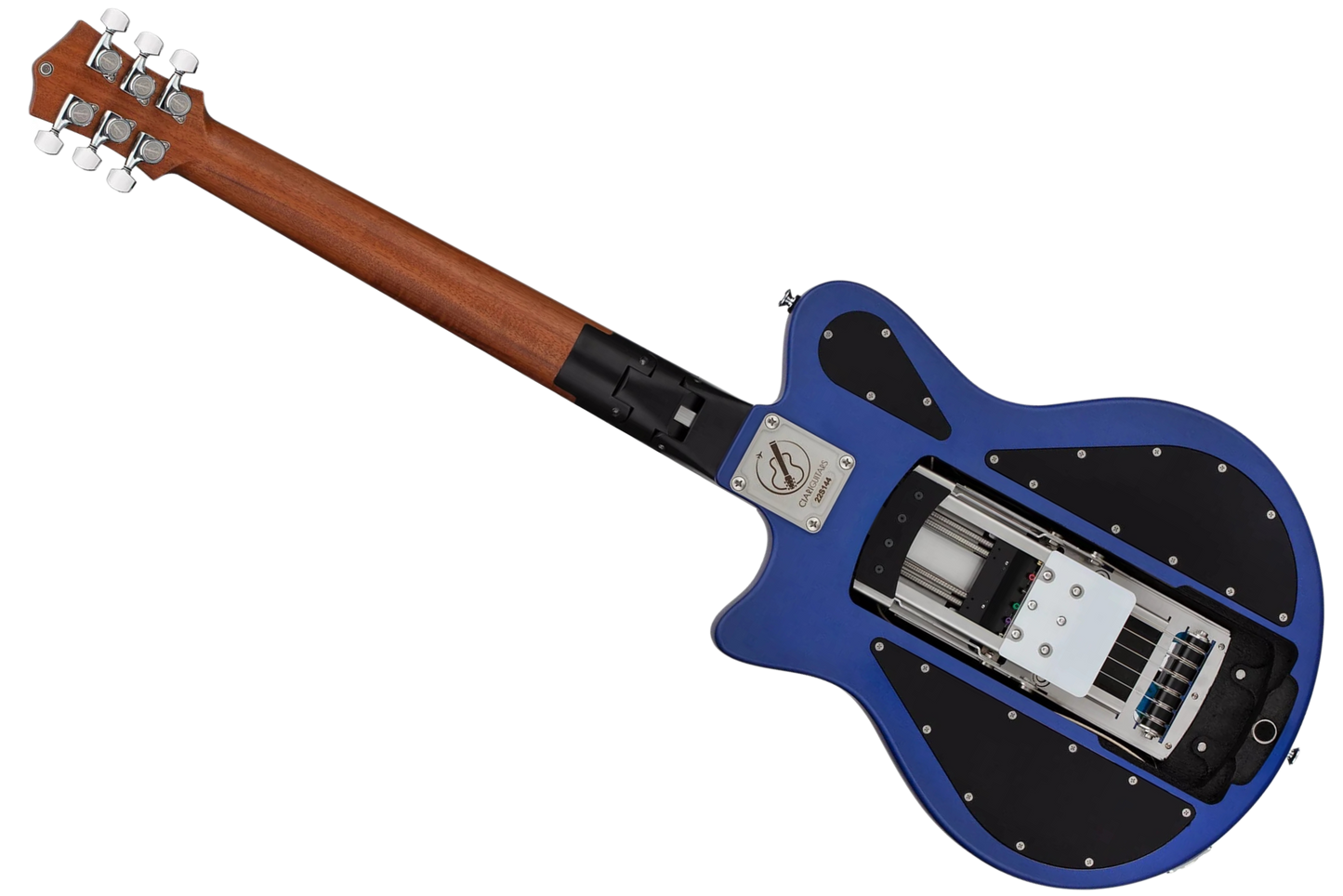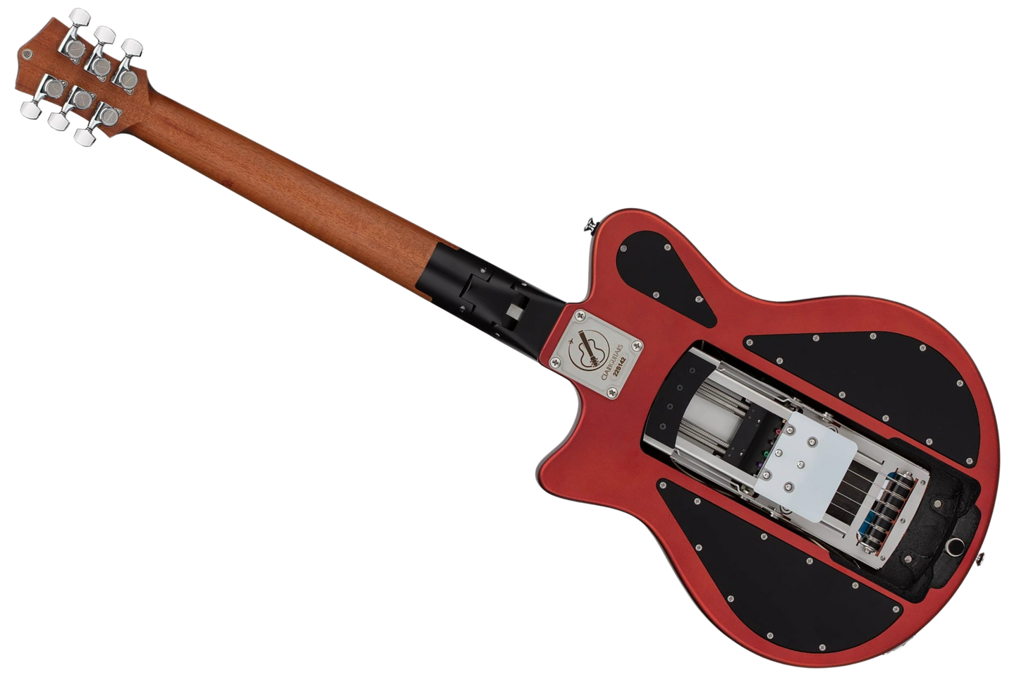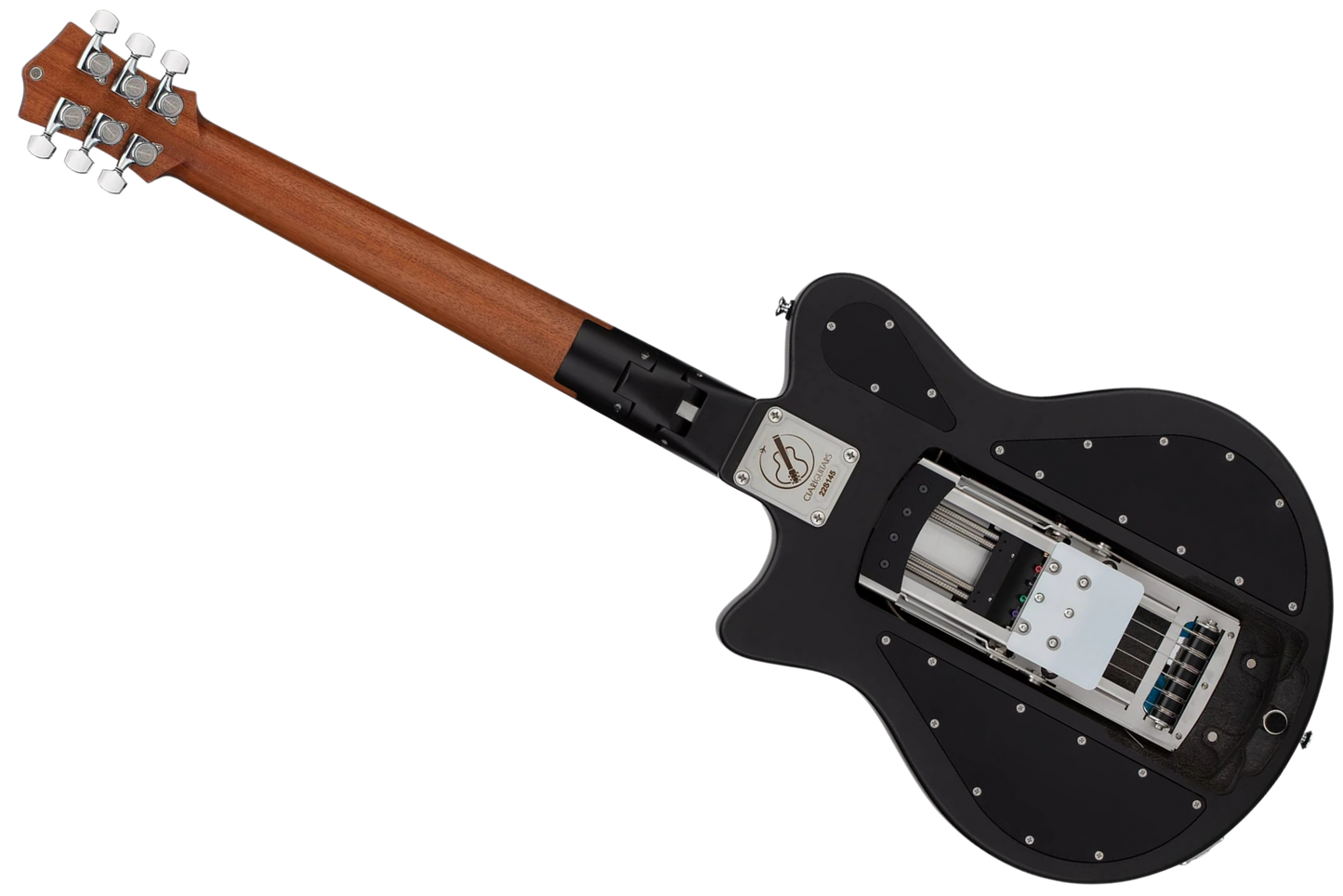 Designed for comfort and precision, the Ascender Duo features a weight-relieved basswood body and a shallow C-shaped mahogany neck. Its PLEK-machined neck and premium ebony fingerboard ensure perfect action, while medium jumbo frets and softened edges allow for effortless playability. Ciari’s custom locking tuners keep your tuning stable, even after the guitar is folded.